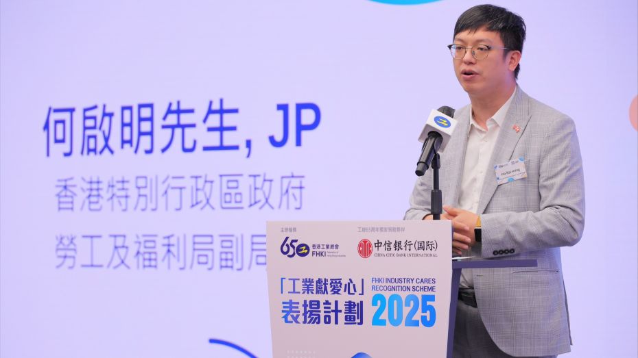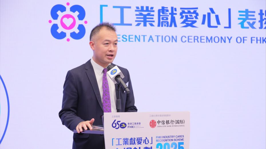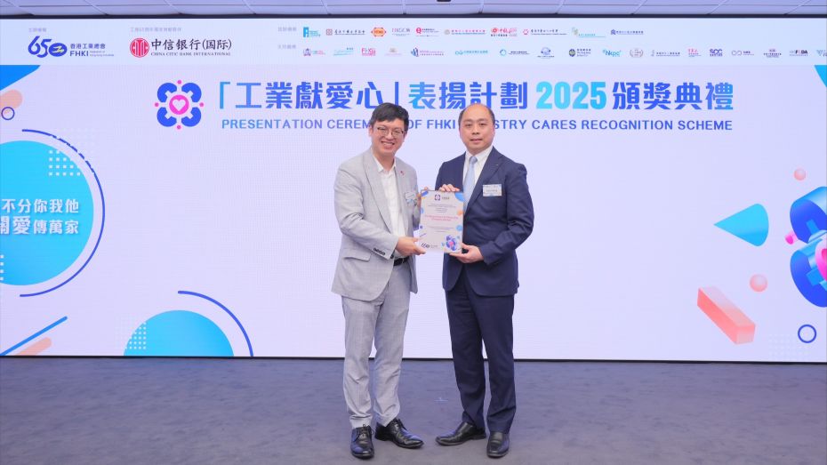 Federation of Hong Kong Industries (FHKI) and its Committee on Promoting Corporate Social Responsibility (CSR) held the “Industry Cares Recognition Scheme 2025” Presentation Ceremony today (17 September). The event was graced by the presence of Ho Kai-ming, Under Secretary for Labour and Welfare. The scheme aims to recognise companies that benefit society by implementing CSR projects and encourage more companies to adopt CSR practices. The Hong Kong and China Gas Company Limited triumphed as the recipient of the prestigious Grand Award for the enterprise group, while Immune Materials Limited clinched the Grand Award for the SME group.